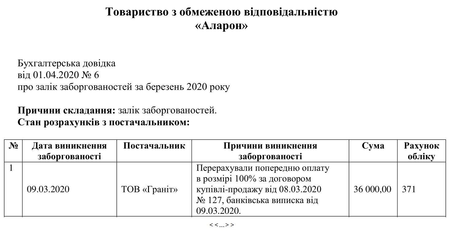 Як скласти бухгалтерську довідку про залік заборгованостей?