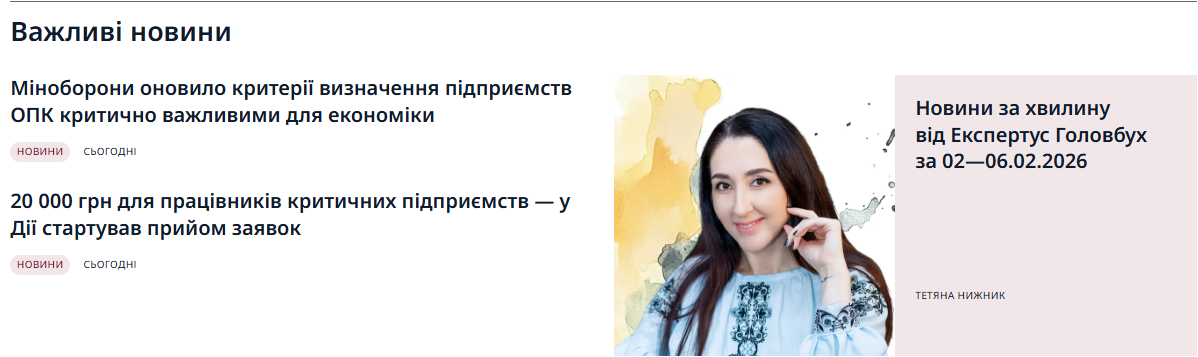 Починайте роботу із системою «Експертус Головбух» зі стартової (головної) сторінки! Вона динамічна, щодня оновлюється і містить найважливіші та найцікавіші теми, які потрібні бухгалтеру для роботи саме сьогодні!