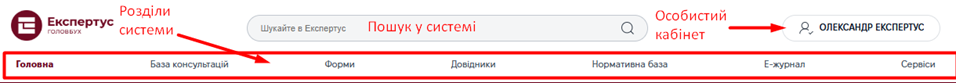 На будь-якій сторінці Експертус Головбух вгорі ви бачитимете: