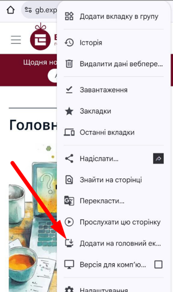 Прокрутіть меню трохи нижче до пункту «Додати на головний ек…»