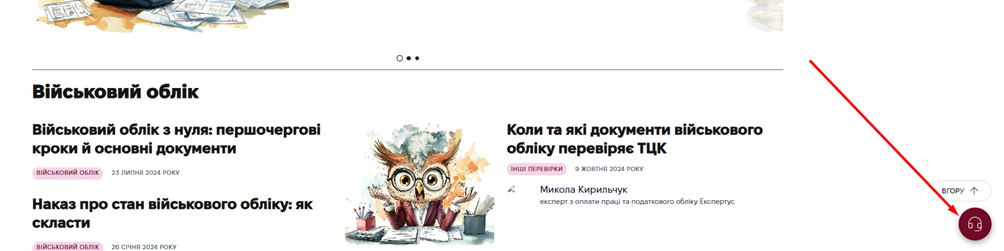 1. Якщо ви не знайдете в базі даних експертно-правової системи «Експертус Головбух» опису робочої ситуації, яка аналогічна вашій, то можете надіслати звернення до нашої експертної підтримки за допомогою кнопки «Онлайн-помічник», що розміщена в правому нижньому куті сторінки.